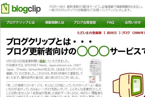 このブログ内にリンクを貼っているプレスブログとブログクリップ。